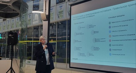 В первой части мероприятия директор по юридическому консультированию «Мариллион» Любовь Грибанова выступила с темой «Современный подход к мотивации персонала: правильная постановка KPI, материальное и нематериальное стимулирование».